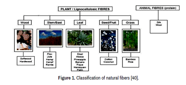 Natural fiber-reinforced polymer composites consist of a polymer matrix, and this matrix is embedded with natural fibers such as jute, sisal, flax, and oil palm. Generally, polymers are categorized into thermoplastics and thermosets [28]. Thermosets polymers have properties of high strength, higher Young Modulus, and it can’t back to its original state after melting. On the other hand, thermoplastics polymer such as polyethylene, polypropylene, and polyvinyl chloride are using for reinforcing composites with natural fibers to get the better properties of biodegradability [29]. The chemical structure of natural fibers [cellulose, hemicellulose, and lignin] helps to get ultimate properties while natural fiber is used as fillers or reinforcing material with other degradable or non-degradable materials [30]. Endowing some chemical properties of wool by using alkali treatment on jute has enormous potential to use as a reinforcing material with the PLA [31]. Many researchers have studied the feasibility of using natural fibers with non-biodegradable polymers and found desired properties like good degradation rate in the environment and improved mechanical properties [32,33].
