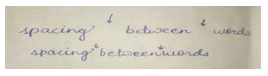 Spacing: The space between letters in words, between words in sentences and between two lines is known as spacing. When contested and model signatures are placed on each other, spacing is a key feature in tracked forgeries. However, in traced forgeries, the mathematical spacing and size of the alphabets typically remain the same. Spacing might be average, narrow or broad.