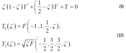Equation (9) is the Gaussian equation [7]. Its canonical integrals in the vicinity of the point ζ=0 are expressed through the hypergeometrical function F (α, β, γ, ζ) [7] and have the following form in this case.