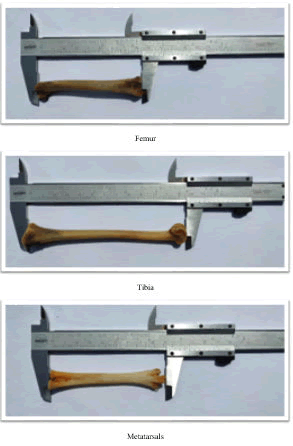 Birds were slaughtered and long bones (humerus, radius, ulna, femur, tibia and metatarsals) were removed. For loosening of the soft tissues, specimens were boiled and soft tissue was removed manually from each selected bone. To break cartilage and collagenous tissue, specimens were simmered in borax while residual fats were removed by soaking specimens into xylol solution [8]. Specimens were then labelled accordingly.