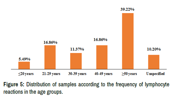 Out of all the samples with an inflammatory reaction, the "Hemorrhagic" nature was predominant and lymphocyte reactions were the most concerned, ie 140 cases (54.90%) out of 255 lymphocyte reactions.