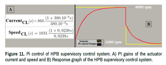 In Figure 11, the transfer functions with PI gains for current and speed of HPB actuator and the system response with PI control following the reference set in the supervisory control system of HPB. And in Figure 12 is shown the test 2 of HPB supervisory control using the definitive actuator of HPB inserted in the assembly of the mechanical components of HPB. Table 2 shows the results of test 2 of the HPB supervisory control system.