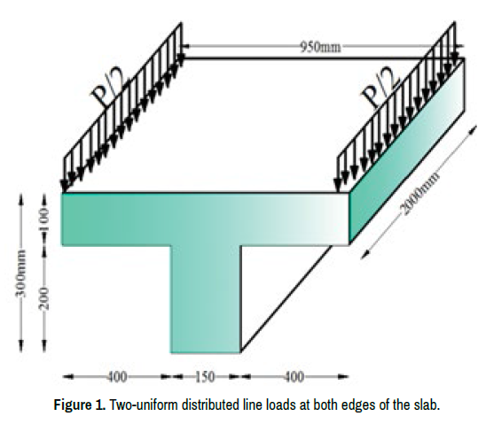 The experimental program consisted of constructing and testing of 8 simply supported T-beams, where specimens were loaded on the slab only with uniformly distributed load at both edges of slab, as shown in Figure 1.