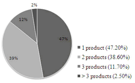 Number of products per prescription: Figure 2 shows that almost 50% of patients take a single product and only 14.2%take three products or, very rarely, more.