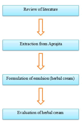 Formulation of herbal cream for anti-aging was successfully developed that met the relevant pharmaceutical characteristics the prepared formulations showed good Spread ability no avidance of phase separation and good consistency during the study period. Stability parameter like visual appearance, nature, viscosity and pH. Of the formulation showed that the rewash no significant variation during the study period, the prepared formulation showed the study period. The prepared formulation showed prepare ph. range that is approximately pH 6.8 is confirms the capability of the formulation with skin. The cream was found to be stable study it can be used as the provision of a barrier for skin. Aprajita contain anti-oxidant property. Anti-aging property of formulated herbal skin cream hay yet to be experiment and will be done in future.