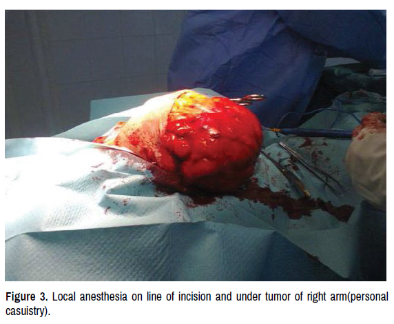 Figure 3. Local anesthesia on line of incision and under tumor of right arm(personal casuistry).