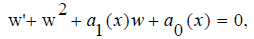 . The equation given just above is a Riccati equation, so we hereby employ the correspondence between Riccati equations and second order linear O.D.E's. By substituting w with