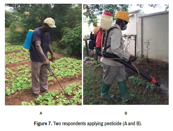 Application of pesticides on farms and elimination of pests at homes is a male dominated activity done by people who are 50-54 years and mostly bread winners for families. In terms of education, pest exterminators have higher levels of education compared to farmers who apply chemicals. The high level of education on the part of pest exterminators seem to have enabled them to adhere to safety precautions for their own well-being. In the case of farmers, less attention is paid to safety precautions which is considered a risk to their health. A study among watermelon farmers in the central region of Ghana showed farmers experienced symptoms of headache, burning sensation, fever, watering eyes and chest pains after spraying agro-chemicals [18].