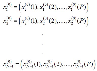 where α and βj are some coefficients; k=1, 2, …, P is the data index;xj(1) (k), for j = 0, 1,..., N-1 , are the first-order accumulative generation operations (1-AGO) of the original sequences xj(0)(k) defined below: