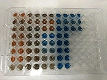 Protein levels were determined for normalization purposes using the Bradford assay. Briefly, the cells cultured in 96 well plates, as shown in Figure 4, were washed with phosphate buffered saline (PBS) and incubated with Bradford solution (Sigma, Germany) for 30 minutes, followed by subsequent washing in PBS. In each experiment, samples were normalized to a standard curve prepared by a BSA stand and stock solution (in PBS) with serial dilutions made in the Bradford solution.