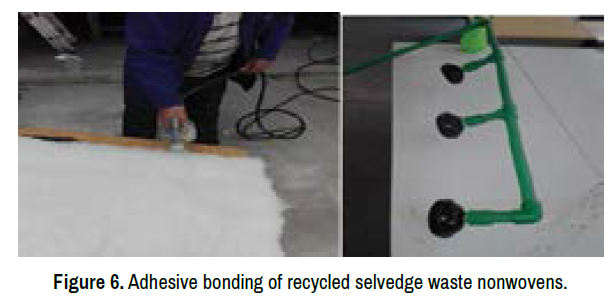Figure 6. Adhesive bonding of recycled selvedge waste nonwovens.