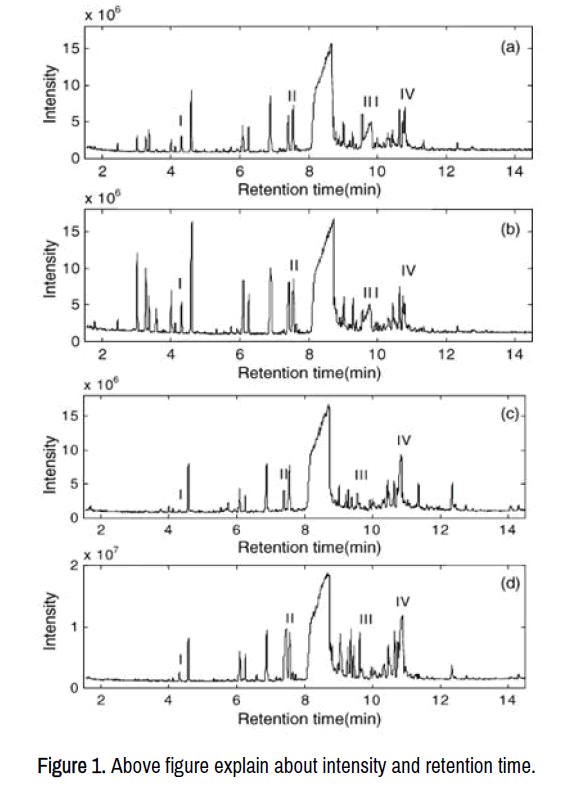 It was typical practice in early chemo metric studies to first convert chromatographic data to a retention time-peak area data matrix, regardless of whether the peaks' identities were known or not. In order to analyze the data, the fingerprints were compared to each other and the principal component analysis was utilized to determine the degree of similarity or dissimilarity (Figure 1).