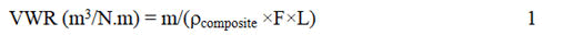 Where m is the average mass loss (g), F is the force applied (N), L is the sliding distance (m) and ρ is the density of the materials (g/m3).