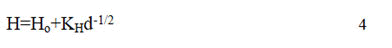 The terms, Ho and K are experimental constants and are different for each metal. Ho is the value characteristic of dislocation blocking and is related to the friction stress. KH takes account of the penetrability of the boundaries to moving dislocations and is related to the number of available slip systems.