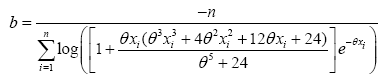 Hence, the maximum likelihood estimators of b and θ can be obtained by using the fixed point method or Newton - Raphson method or other numerical methods.