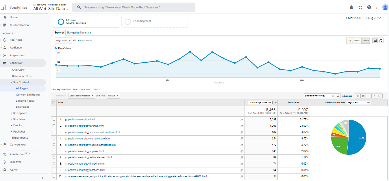 Google Analytics Metrics for the Journal of Pediatric Neurology and Medicine