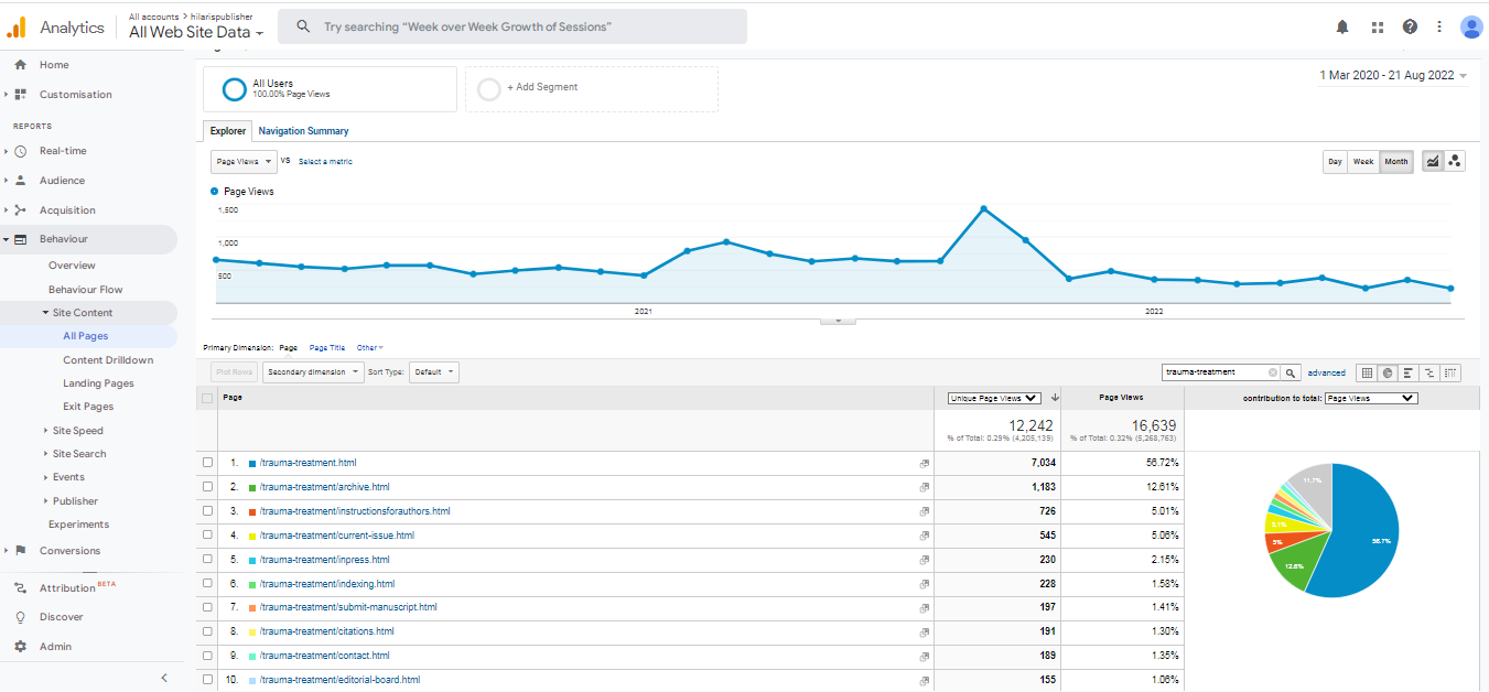 A statistical representation of global users for Journal of Trauma & Treatment (Source: Google Analytics)